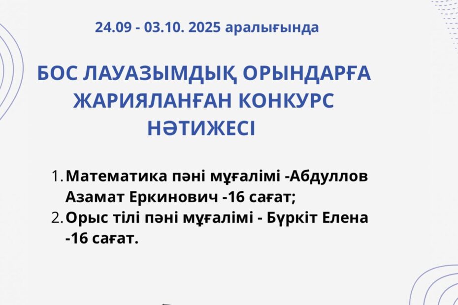 🇰🇿 Қазақ тілі апталығының ашылуы! Мектебімізде мемлекеттік тілдің мәртебесін көтеруге,…Қазан 16, 2025Желтоқсан 12, 2025